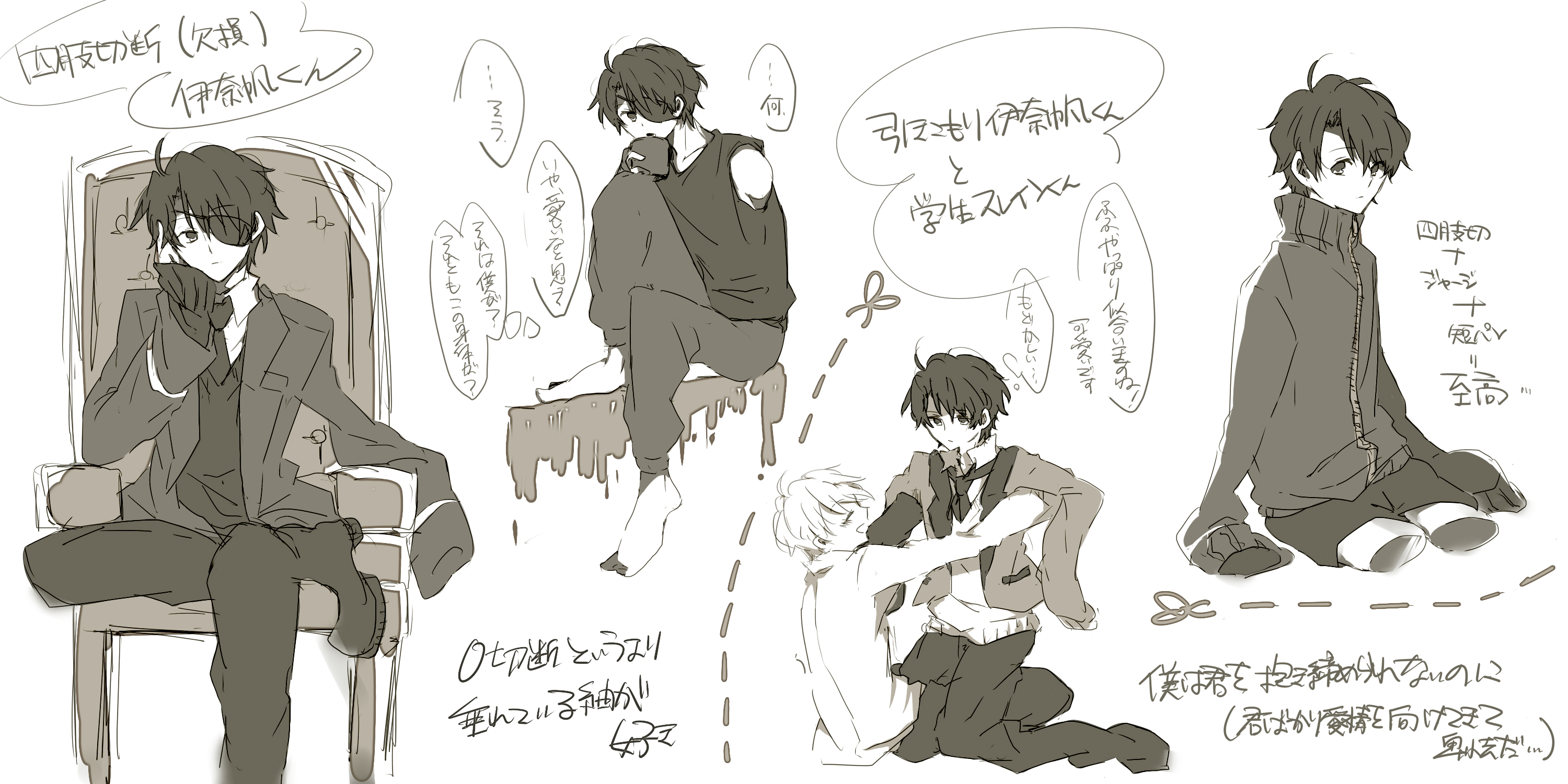そんなこんなでちょっとやさぐれてたのでタイトルの通り(私が描くのでそんなグロいものではないですが)欠損伊奈帆くん(スレ伊奈含:スレインくんがアクロトモフィリア(身体欠損愛好))なんて描いてました時期的にも異常性癖熱がきてですね…四肢切可愛い…