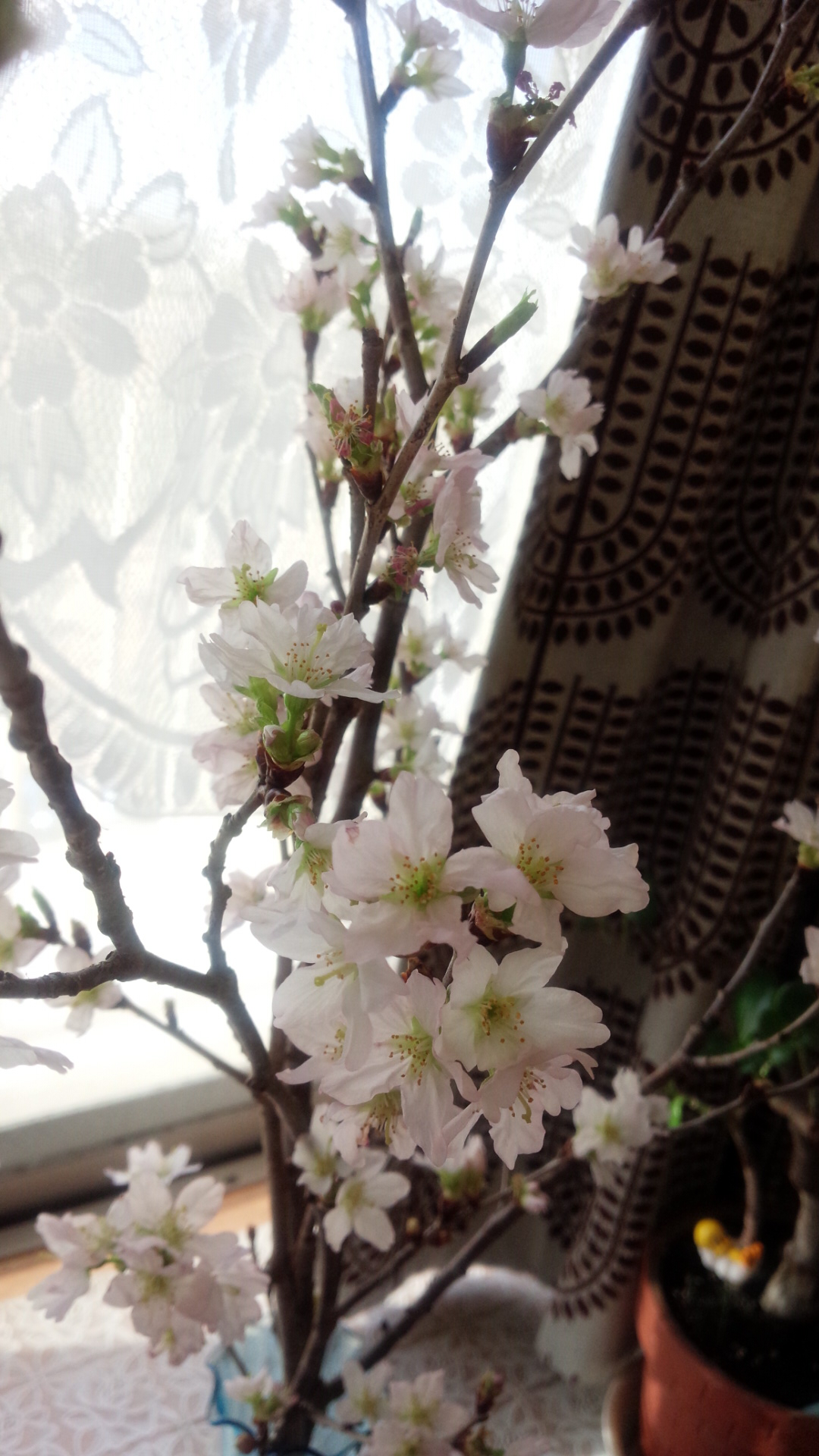 間に友人から退職兼転職祝いいをいただいたんですが、ぶっちゃけると実はどっちもきっちりとは済んでいなくて情けない限りです…でもいただいた桜の枝が花咲いたので折角なので沢山の方に見ていただきたいと思いまして…最近暖かかったからかもらってから1週間程で咲きました自宅で桜って育てられるんですね凄い…(小並感 詳しくないのですが根が出るようでしたら土に植え替えようと思います。